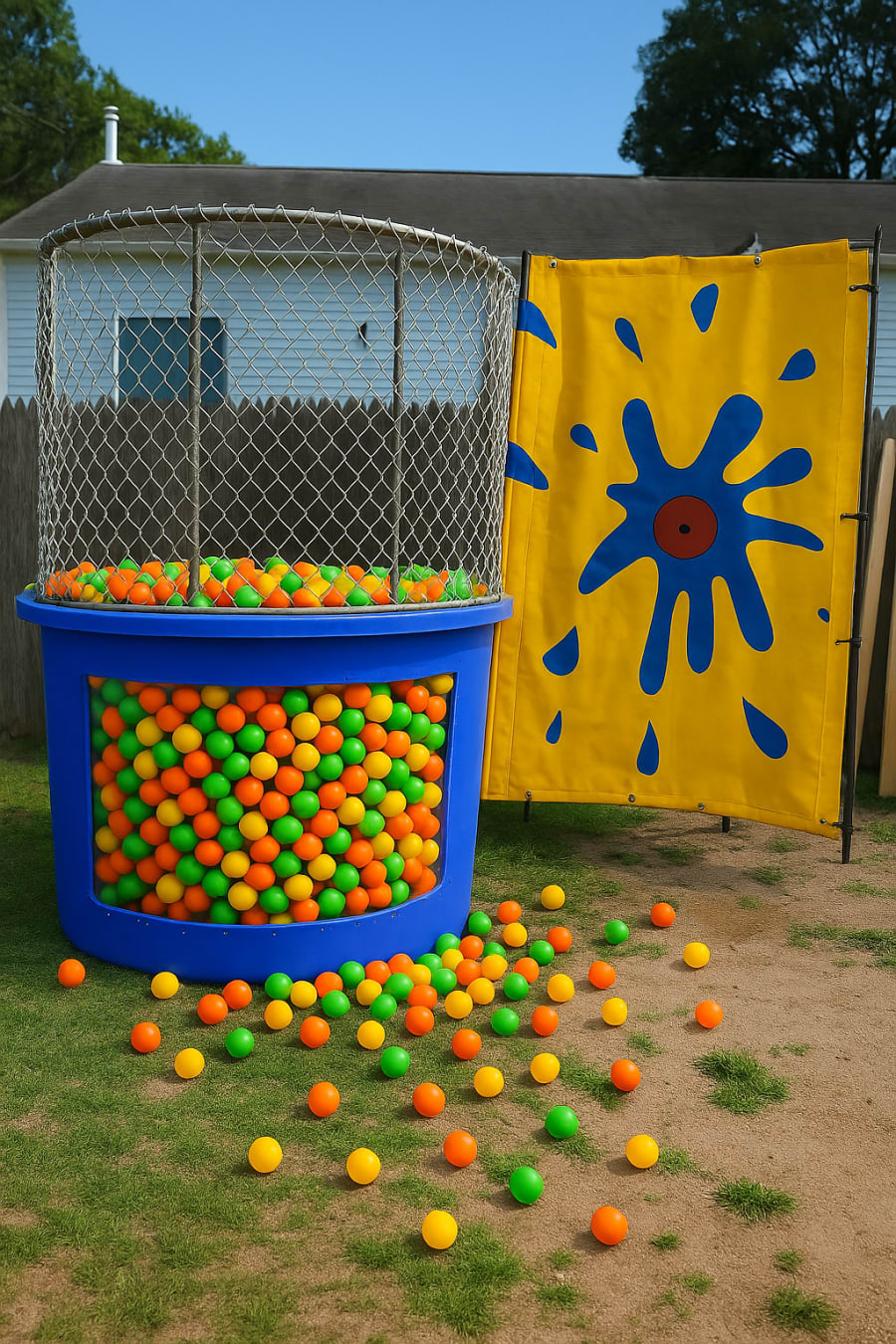 This interactive dunk style game is perfect for birthday parties, school events, summer camps, block parties, and backyard celebrations across Suffolk County and Long Island.