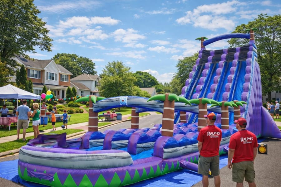 Why settle for 2 lanes when you can have THREE? Ralph's Rentals is proud to bring you the Island Tsunami Triple Lane—the largest and most exciting water slide in the area.