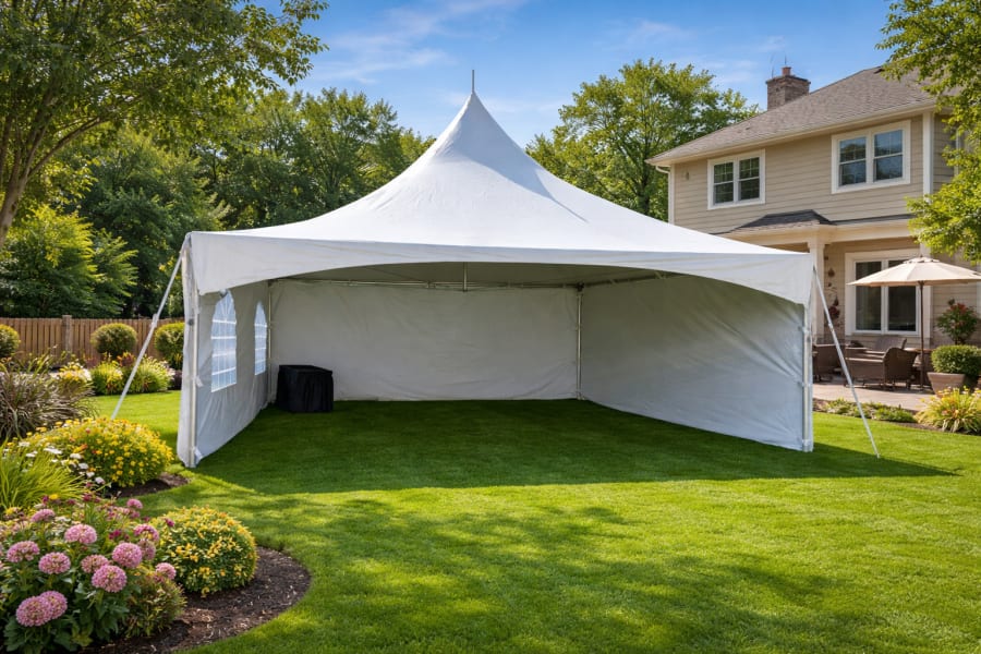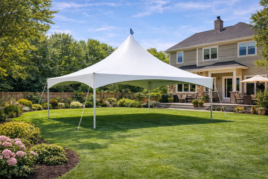Our 20×20 High Peak Tent Rental on Long Island is a perfect choice for backyard parties, BBQs, birthdays, graduations, communions, and family celebrations. The elegant high-peak design adds a clean, professional look to your event while providing comfortable shade and weather protection for your guests.