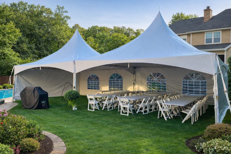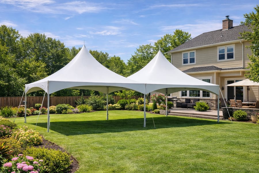 Our 20×40 High Peak Tent Rental on Long Island is the ideal solution for larger backyard parties, graduation celebrations, weddings, communions, corporate events, and family gatherings. This elegant twin high-peak tent provides a spacious and professional event setup while offering shade and protection from the sun or light rain.